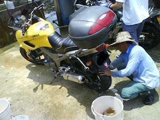 The place where they had their bike washed this afternoon.. A very good job done by them.. As u noe this mth is their puasa mth!! Good work man!! Bike wash cost RM5!